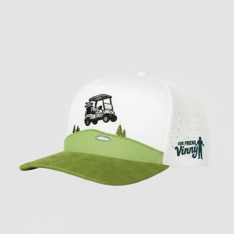 Our Friend Vinny was created as a tribute to friendship, the kind built over tee times, bad shots, inside jokes, and long post-round conversations. It’s about showing up, not showing off (okay… maybe just a little with some great gear). It’s about loving the game, the people you play it with, and the moments that matter far more than the scorecard. Vinny represents that spirit perfectly, whether he knows it or not.
